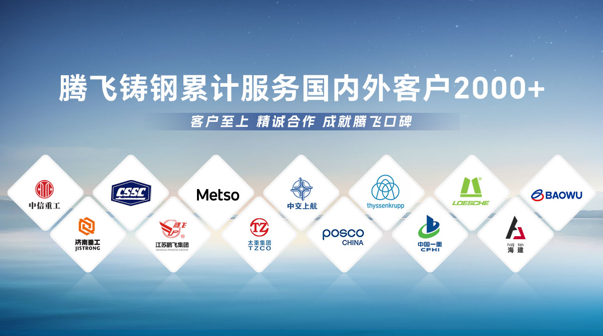 騰飛鑄鋼成立于2006年,位于全國鑄造基地河南省新鄉市,擁有員工300余人,是一家從事150噸以下碳鋼、低合金鋼、不銹鋼鑄鋼件研發、制造、服務為一體的國家高新技術企業?! 」就ㄟ^了ISO9001國際質量管理體系認證,擁有2項發明專 利,2項河南省科技成果、25項實用新型技術,通過了“環保績效評級B級企業”驗收,先后榮獲“河南省鑄造行業綠色發展企業”、 “河南省科技型中小企業”、“河南省專精特新中小企業”等榮譽稱號。  公司擁有2臺25噸電爐,4臺大型天燃氣熱處理爐、10米回旋自動拋丸機一臺, φ8m數控立車、φ10m數控滾齒機等各類高精裝備100余臺套,年產能3萬余噸,能為客戶提供從產品設計、木模加工、大型鑄造、大型加工一站式服務,產品廣泛應用于建材、冶金、鍛壓、冶金、水工、路橋、化工等多個重型行業?! ¢L期服務于中信重工、中船重工、美卓、上海中交、萊歇、寶武、濟南重工等全球知名企業,在行業內擁有較高的市場知名度和美譽度。
